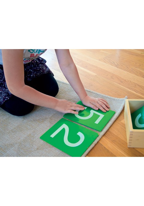 - 10 schede con numeri smerigliati che il bambino può toccare seguendo le frecce che indicano la direzione di scrittura, per scoprire la grafia e riconoscere i simboli.