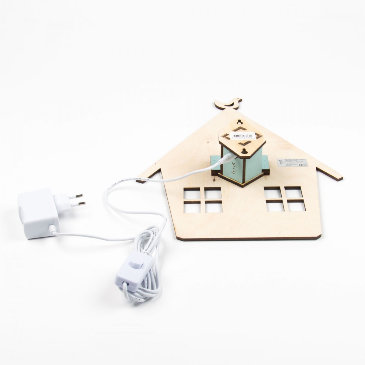 Lampada da parete casetta azzurro pastello di Ferm Living. Lasciate che i bambini leggano, giochino e sognino avvolti dalla luce soffusa di questa lampada a forma di casetta per gli uccellini. Realizzata in rovere impiallacciato a taglio laser e dipinta in un bel azzurro pastello. Grazie al cavetto bianco può essere installata ovunque con un semplice chiodino. Si può collegare alla presa tramite il cavo in dotazione o direttamente al punto luce a parete! La lampada è anche un bellissimo decoro per le pareti della cameretta o dello spazio gioco del bambino.